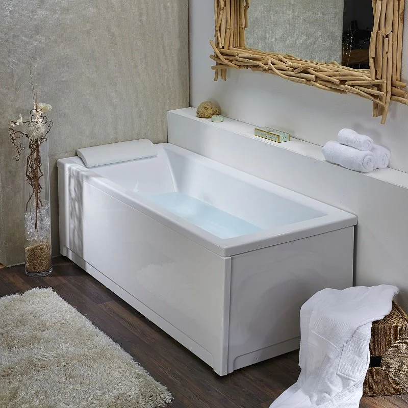 Cette imposante baignoire a une longueur de 180 cm, une largeur de 80 cm et une profondeur intérieure de 43 cm. Son vidage est situé au centre. Plus grande que la moyenne, cette baignoire saura parfaitement vous être utile puisqu’elle vous apportera un confort supplémentaire. En effet, vous pouvez vous baigner à deux dans cette grande baignoire encastrée.