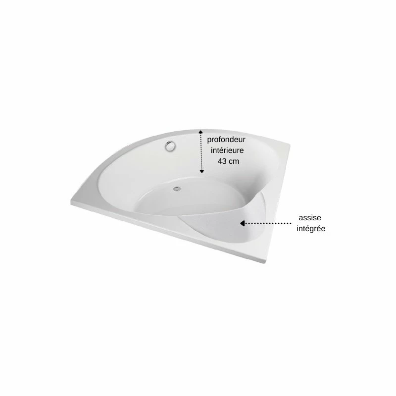 Baignoire d’angle blanche Premium 140 cm 100% recyclable