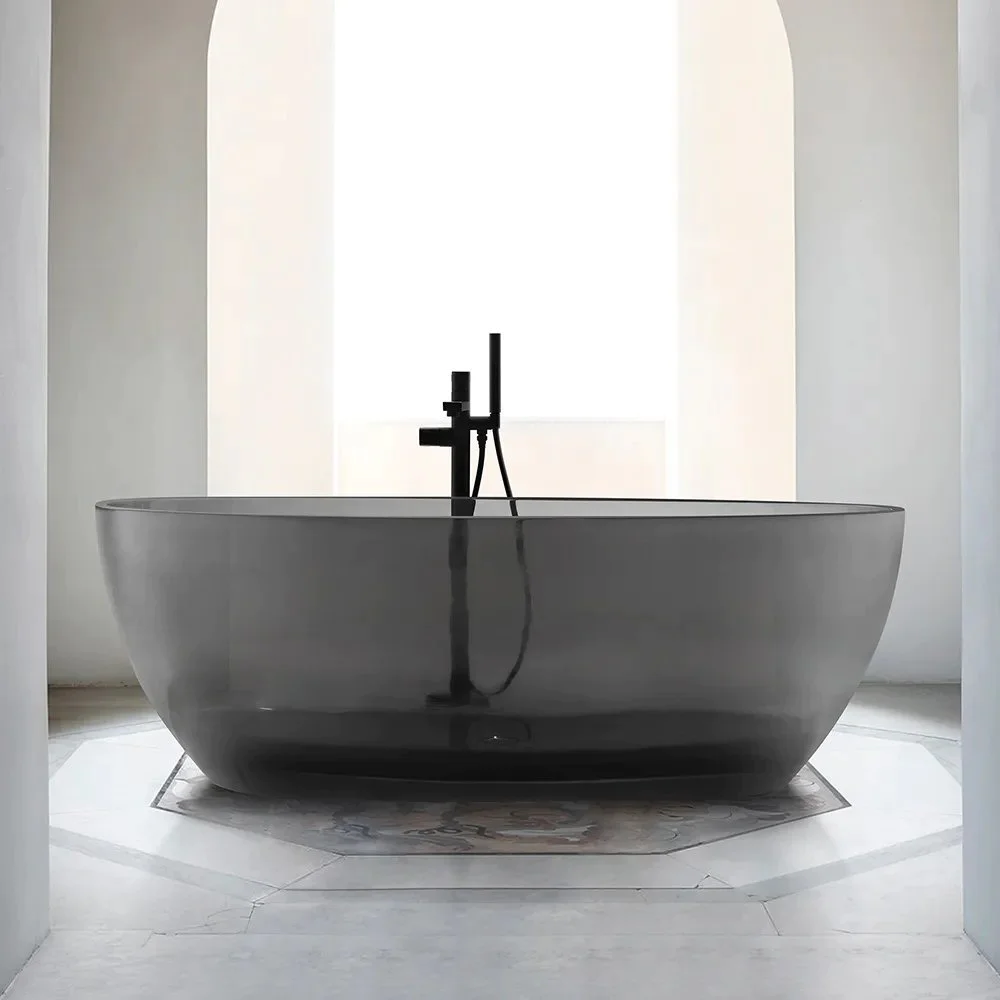Baignoire îlot transparente noire 165 cm Fumé en résine
