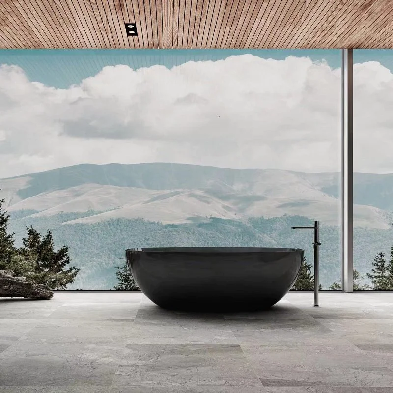 Cette baignoire îlot transparente en résine mesure 165 cm le long. La taille standard d’une baignoire en France est d’environ 160 cm, cette baignoire est légèrement plus grande, elle vous permettra de vous inonder complètement dedans. De plus, sa forme ovale rend son utilisation très confortable. Cette baignoire peut trôner au centre d’une chambre parentale, ou être installée dans l’angle d’une plus petite salle de bain.