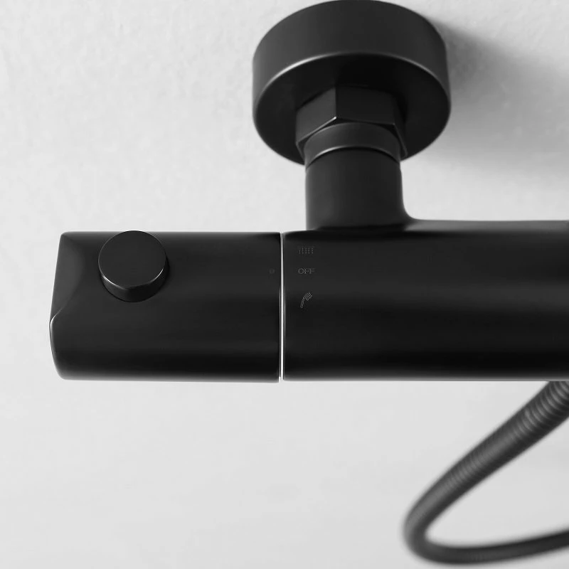 Cette colonne de douche thermostatique ronde Fina noire mate a Ă©tĂ© rĂ©alisĂ©e en laiton massif. Cette matiĂšre est excellente pour la robinetterie, elle fait preuve d’une grande soliditĂ© et rĂ©sistance face aux chocs les plus intensifs.