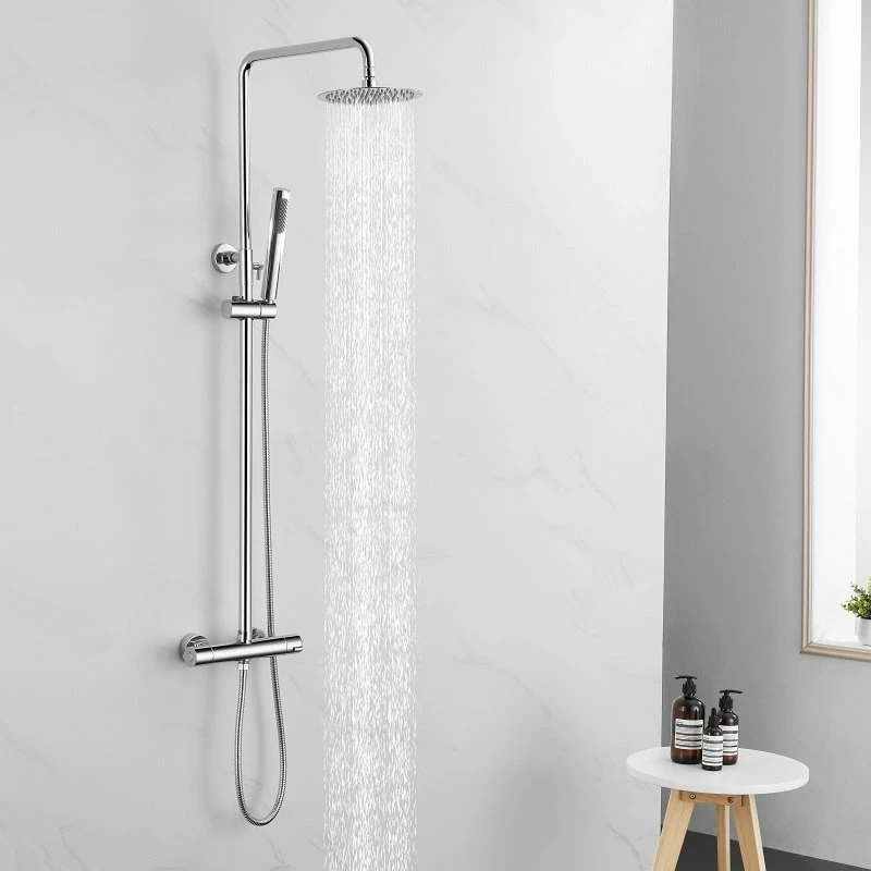 Cette colonne de douche thermostatique en laiton chromé est à la fois très moderne et discrète. Son mitigeur en laiton massif chromé permet une résistance à la corrosion, une facilité d’entretien et une haute brillance qui fera sa différence. Avec son design épuré, elle s’adapte à tout type de salle de bains.