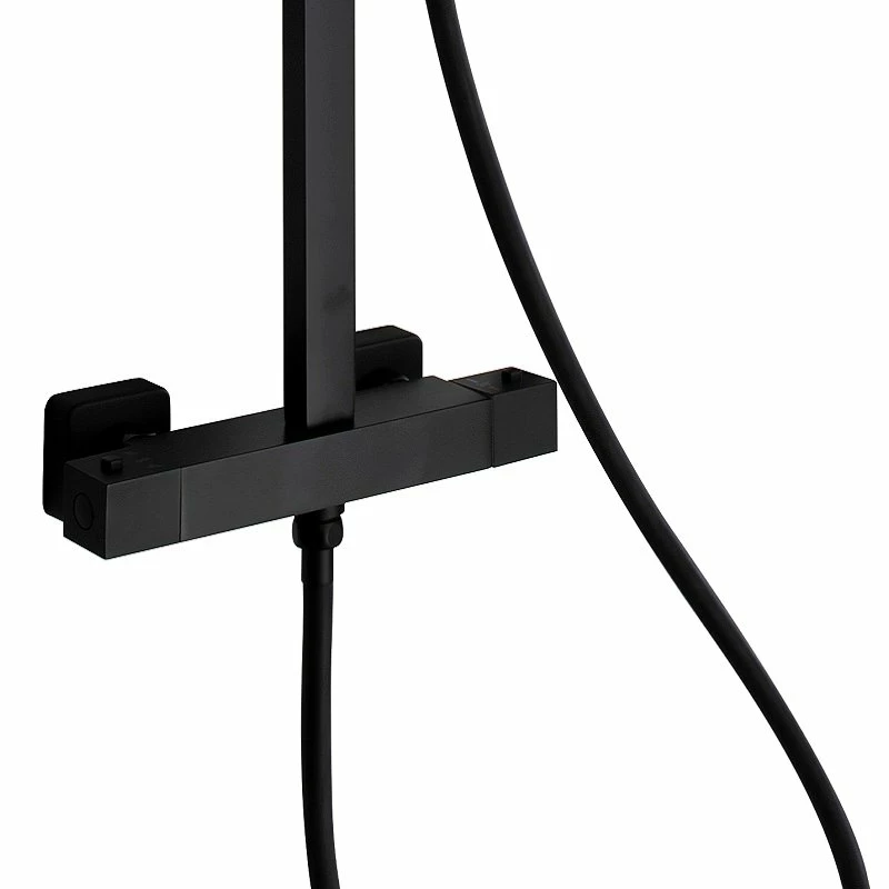 Et pour un rinçage plus précis, vous profiterez de la douchette carrée et de son flexible qui se fixent sur la barre métallique à la hauteur souhaitée.