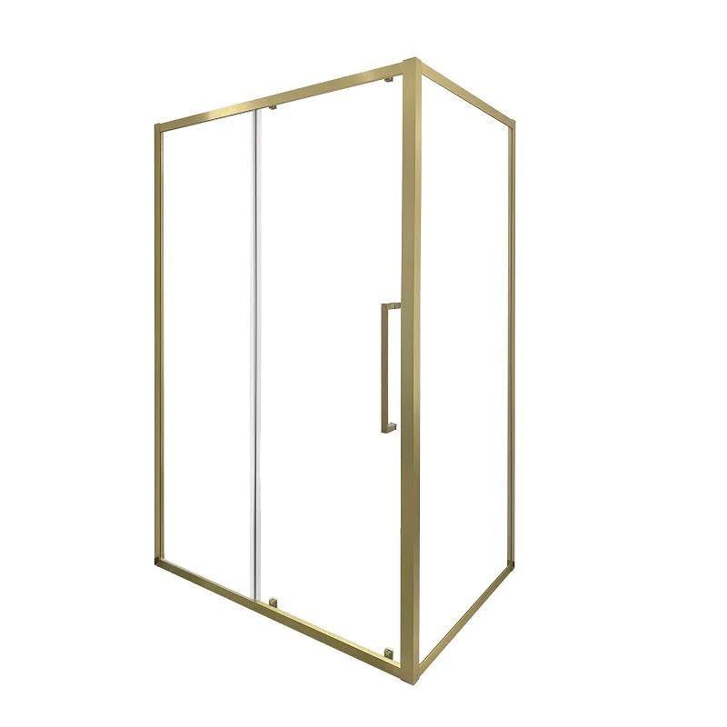 Douche d’angle coulissante or brossé 120×90 cm verre securit