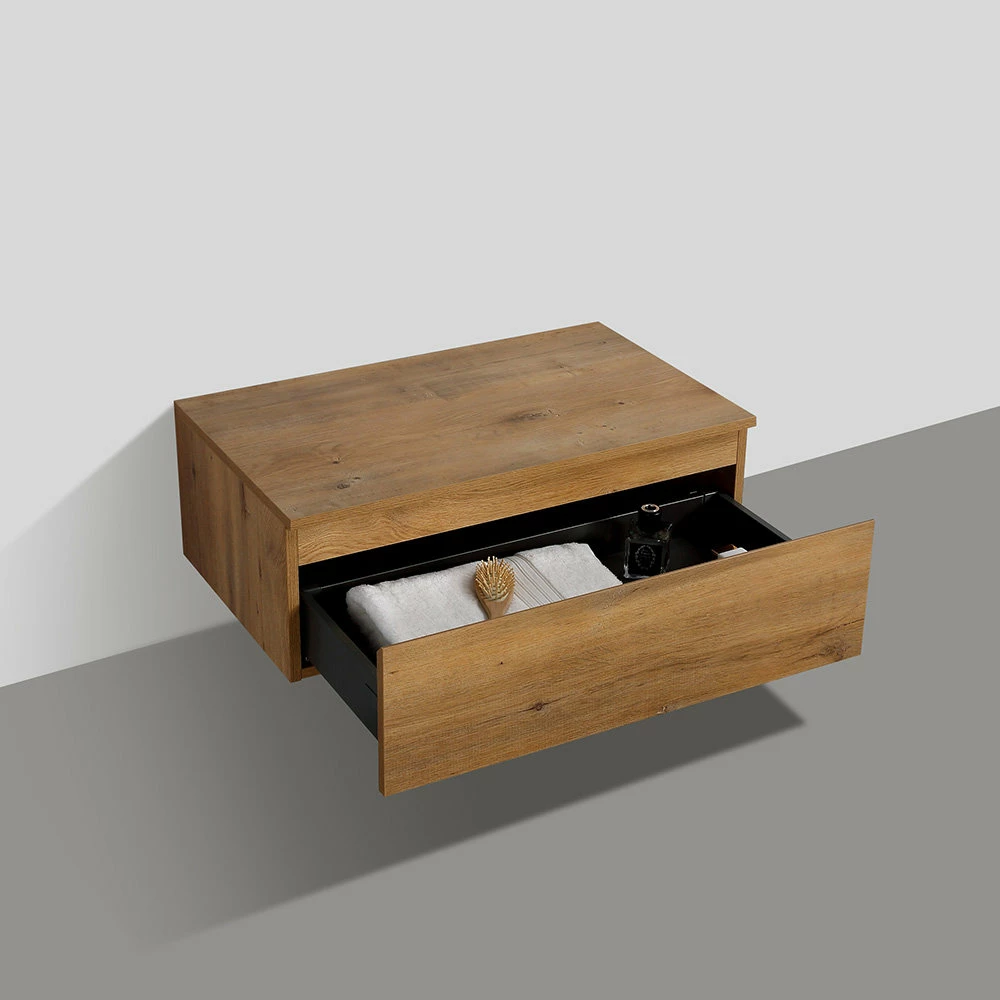 Afin de bénéficier d’un bel espace de rangement, le meuble salle de bain SHEDA 80 cm accompagnera le plan vasque. Ce meuble, aux dimensions moyennes de 80 cm par 27,8 cm, vous offrira néanmoins un grand tiroir indispensable pour le rangement. Compact et design, ce meuble salle de bain SHEDA, aux lignes sobres et élégantes, peut être installé sous le plan vasque pour obtenir un ensemble harmonieux, ou être fixé en décalage, pour un résultat plus original. Il est disponible en 3 teintes : noir mat, blanc mat, chêne.
