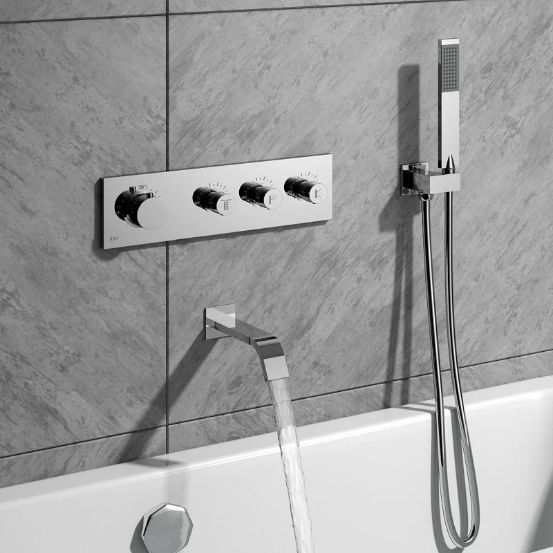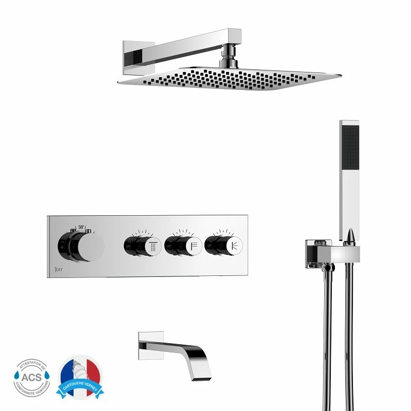 Kit bain douche thermostatique 3 fonctions Quadra en laiton chromé