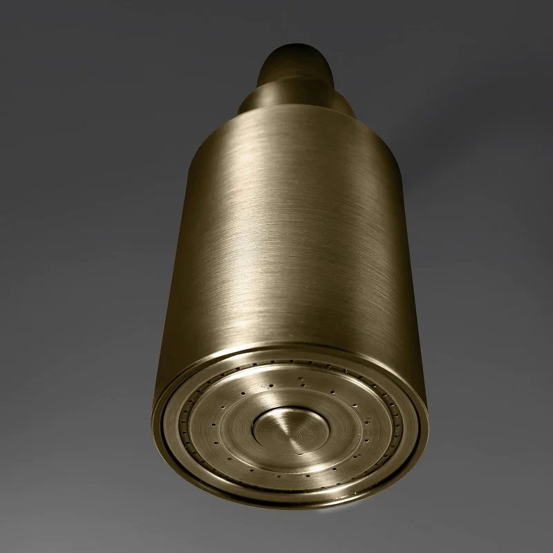 Ce plafond pluie cylindrique ultrafin s’oriente à 20 degrés pour assurer un jet d’eau digne d’un plafond pluie de 30 cm. Ne vous fiez pas à sa taille compacte, la projection d’eau est fascinante. La finition Antique Brass en PVD de la série Encastrado correspond à un or brossé antique réalisé à l’aide brossage artisanal.