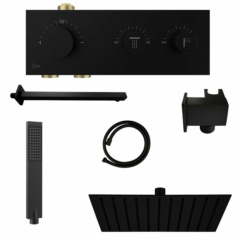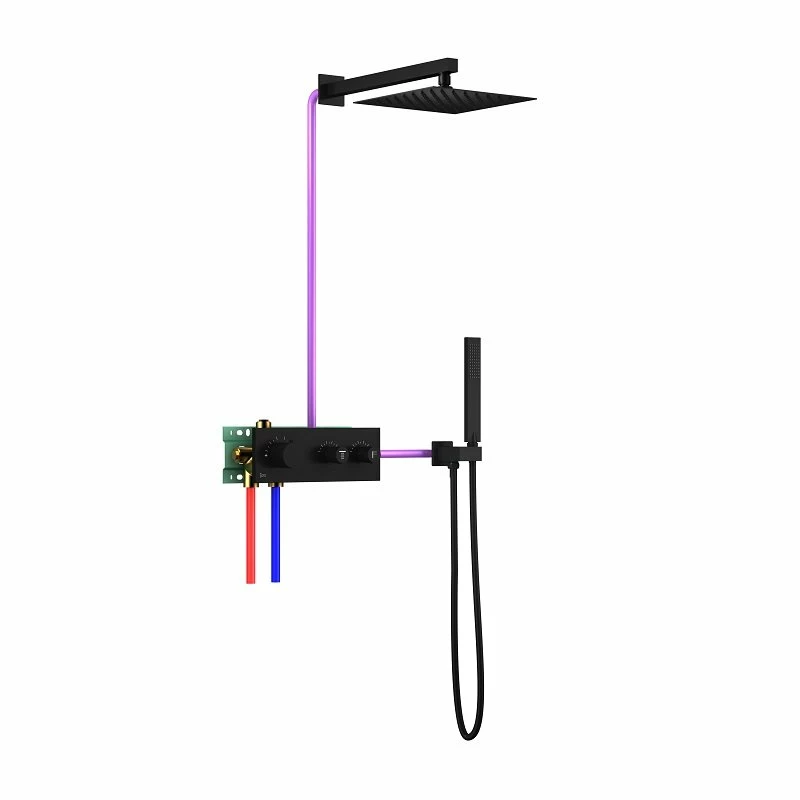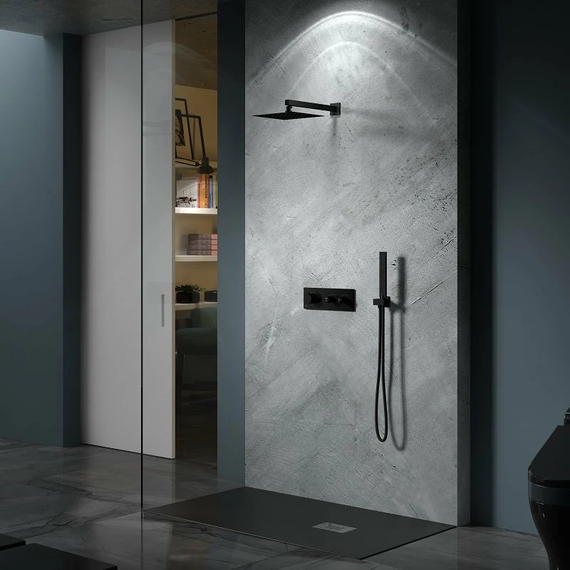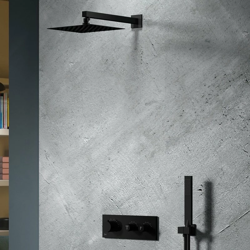 Kit douche encastrable thermostatique noir double-fonction en laiton