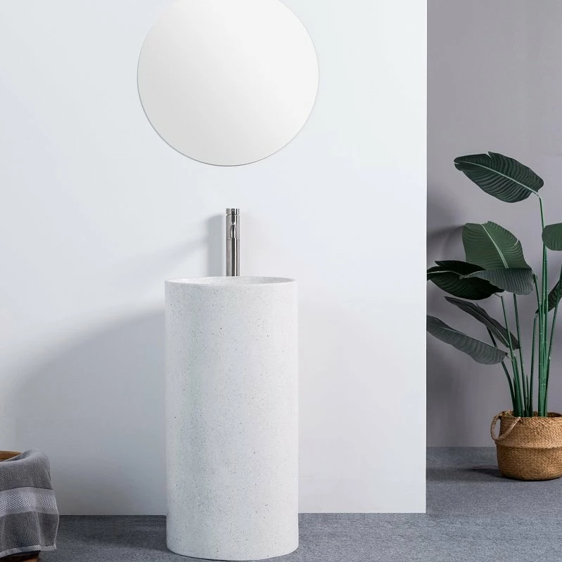 Lavabo totem rond terrazzo blanc Firenze finition polie
