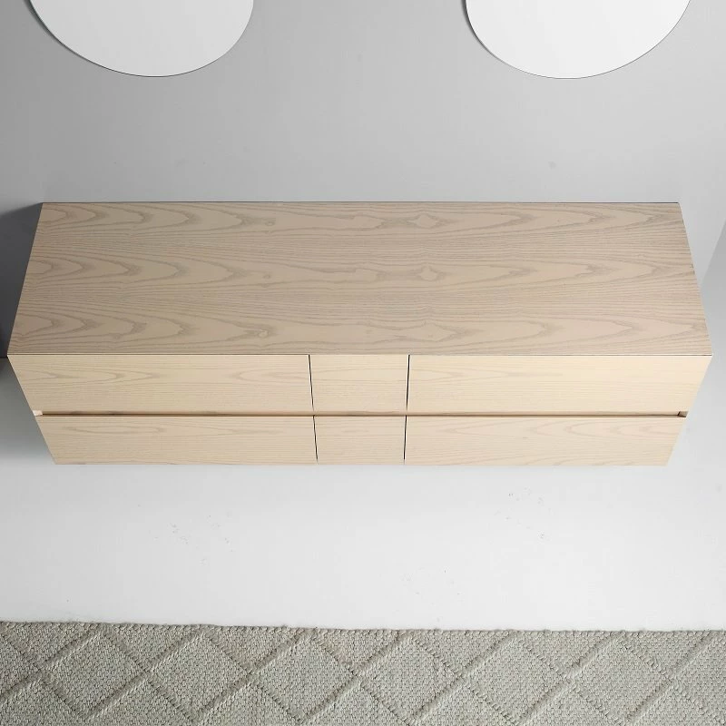 Le meuble double vasque Woodland mesure 170 centimètres de long et 50 centimètres de profondeur, ces dimensions sont parfaites pour créer un grand espace de rangement. Ses six grands tiroirs en vrai bois sont coulissants et équipés d’un système de fermeture softclose, ce qui vous offre des tiroirs avec une fermeture douce. Ce type de fermeture permet de garder le meuble en très bon état malgré une utilisation répétée. Ils réduisent la pression sur les charnières et les plaques de charnière.