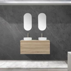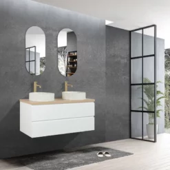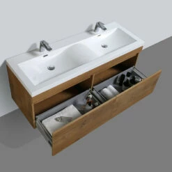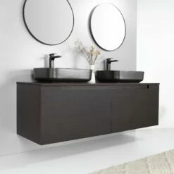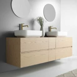 Meuble De Salle De Bain Double Vasque Alicia 140 Cm Bois Chêne