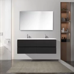 Meuble Salle De Bain Double Vasque Alicia 140 Cm Anthracite Mat