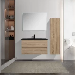 Le meuble salle de bain mesure 90 centimètres de long et 47.6 de large. Ses dimensions favorisent son intégration dans les salles bains même les plus petites. En effet, grâce à ce meuble suspendu en bois chêne 90 cm, vous allez optimiser l’espace. Il est de petite taille, mais dispose de 2 grands tiroirs et de place sur le côté de la vaque pour y poser savon et brosse à dent. Ultra pratique, et très fonctionnel, vous aurez un rangement optimal grâce aux larges tiroirs de ce meuble salle de bain, vous pouvez y mettre vos produits cosmétiques ou encore vos serviettes pour toilettes.