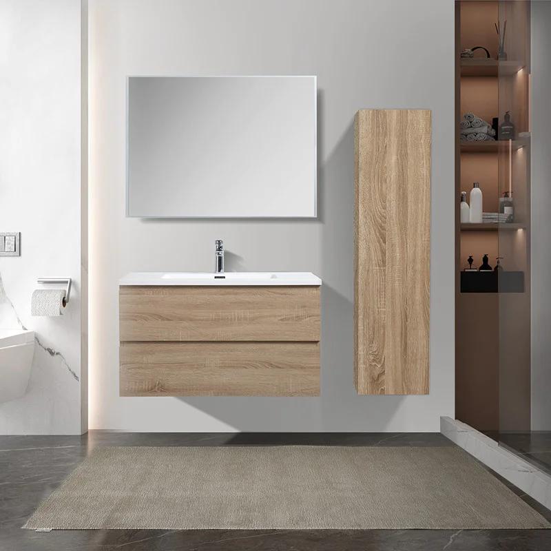 Meuble hydrofuge salle de bain Alicia 90 cm bois chêne scié