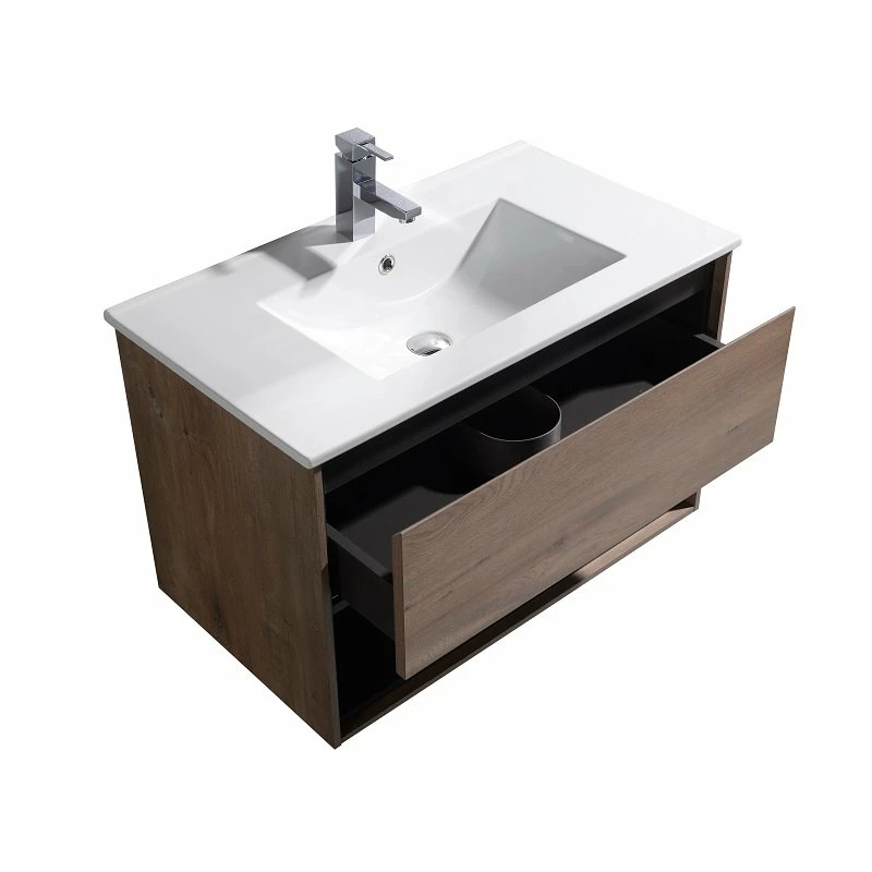 Le meuble salle de bain et vasque Kai contient une niche de rangement afin de vous garantir une bonne organisation et un rangement qui lui est propre. Le tiroir du meuble salle de bain est soft close. Il suffit d’un simple geste pour éviter le claquement du tiroir afin de le fermer en douceur et sans bruit.