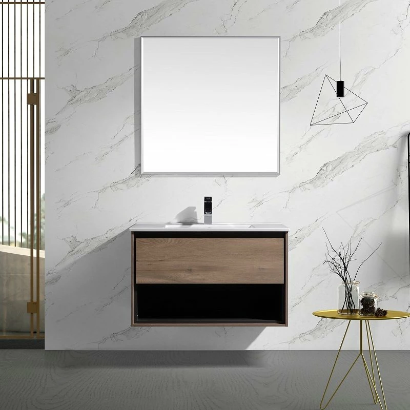 Ce meuble de salle de bain Kai 80 cm est fabriqué en mélaminé. Cette matière très utilisée dans les salles de bains a pour avantage d’être waterproof, robuste et très facile à entretenir. En plus, vous bénéficierez d’une durabilité puisque ce meuble résiste aux chocs et à l’humidité.