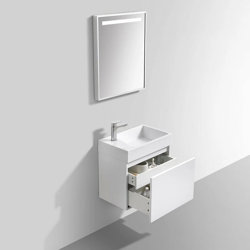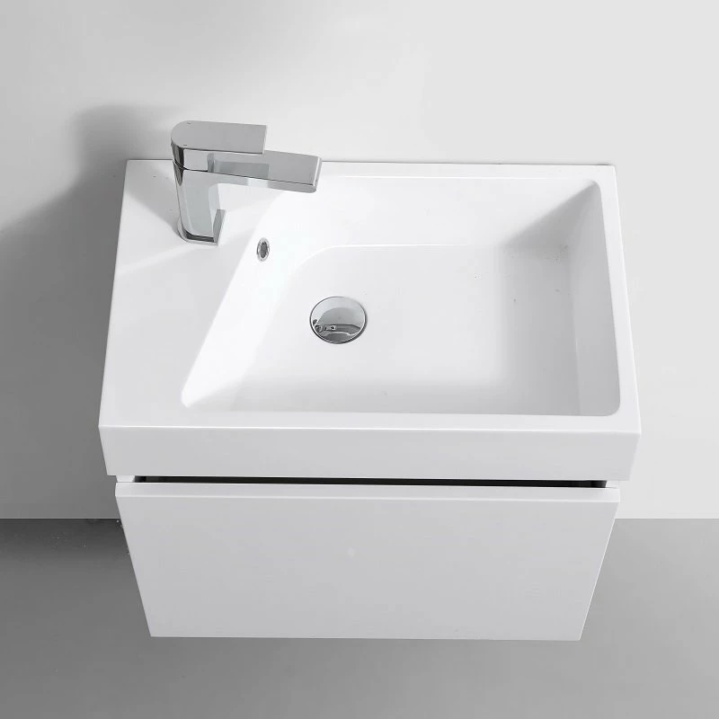 Le caisson blanc laqué possède, quant à lui, une finition brillante. La structure du meuble est réalisée en MDF. Ce matériau, particulièrement robuste, est connu pour avoir une bonne résistance dans le temps aux chocs et aux rayures, ainsi qu’à l’humidité. Sa vasque étant fabriquée en résine, elle est très facile à nettoyer. Pour vous faciliter la tâche, il vous sera livré déjà monté, vous n’aurez plus qu’à le suspendre au mur. La qualité des finitions de ce produit le rend très chic et moderne.