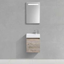 Le meuble suspendu mesure 45.4 cm de long, 25.6 cm de large et 45 cm de haut. La vasque, mesure 46 cm de long, 26 cm de large et 11 cm de haut. Les dimensions de ce meuble toilette sont très avantageuses. S’il s’agit d’un coin toilettes ou d’une petite salle de bain, ce meuble Recto en bois chêne avec vasque encastrée occupera votre mur pour libérer de l’espace au sol.