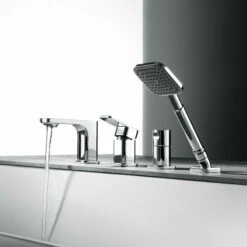 Sublimez votre salle de bains grùce à ce magnifique mitigeur sur pied Fina. Raffiné et élégant, grùce à ses lignes et à sa forme uniques, il accompagnera idéalement votre baignoire ßlot. Faites confiance à notre marque TOTS de chez Tots.