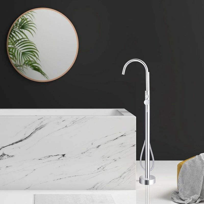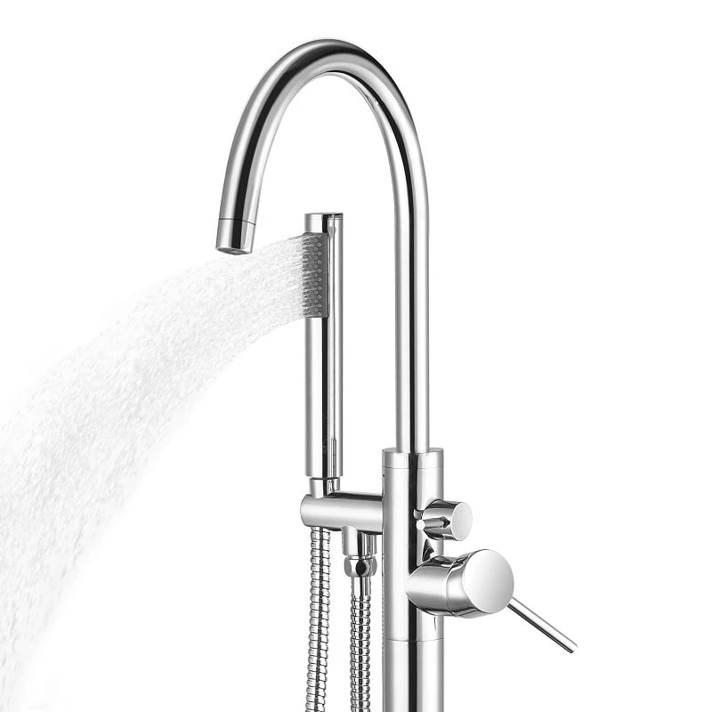 Ce mitigeur sur pied, dispose d’une hauteur de 115.5 centimètres, ce qui n’est ni trop haut, ni trop bas pour ainsi dire, il est approprié à la hauteur d’une baignoire, qui fait souuuvent 60 cm de haut. Celui-ci contient une douchette à main fine et légère au cylindre arrondi, permettant une prise en main plus facile. La douchette détient un flexible pour bénéficier d’une plus grande praticité et d’une malléabilité en adéquation avec vos mouvements.