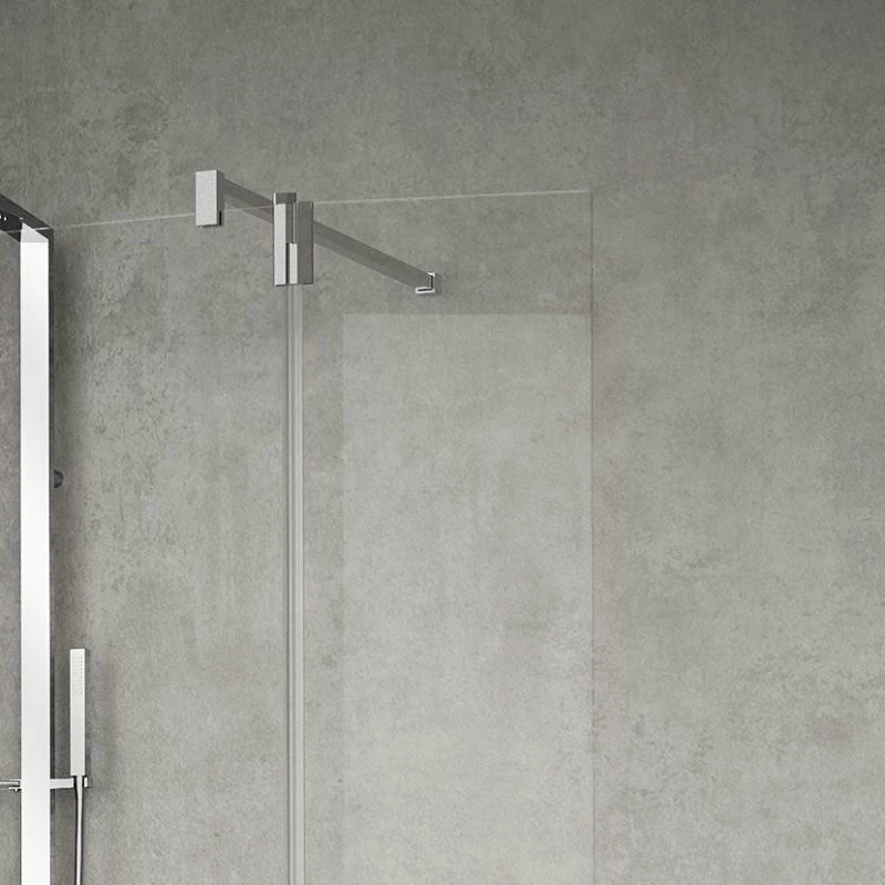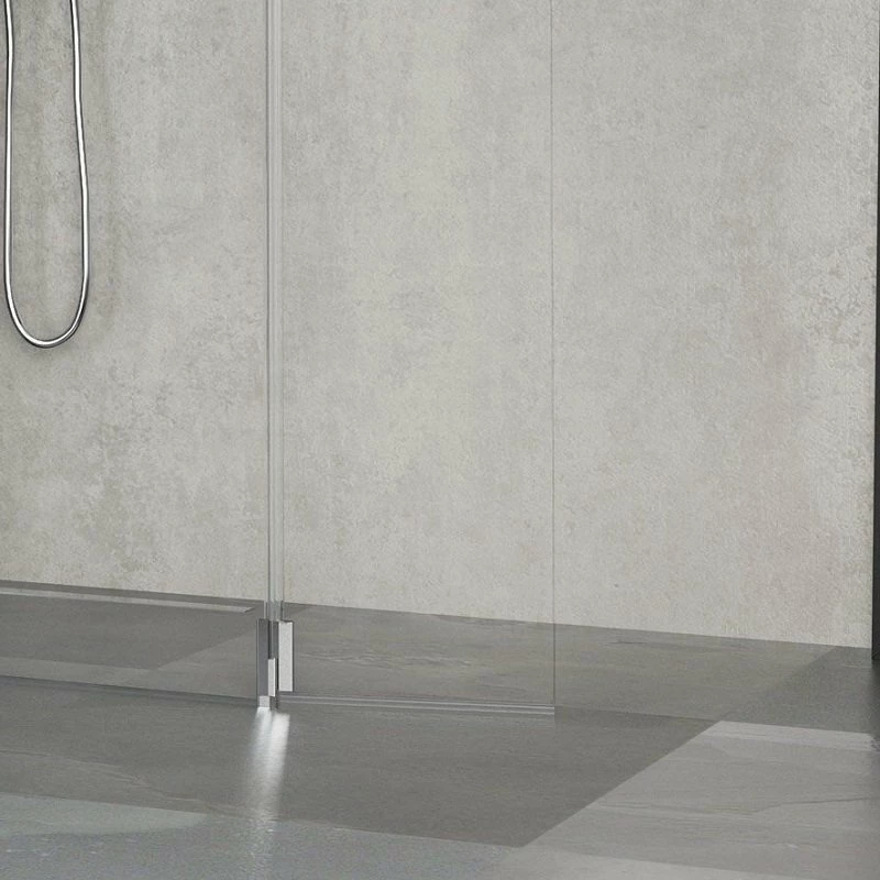 La cloison pivotante de 37 cm s’ouvre, quant à elle, vers l’intérieur de la douche pour atteindre un angle maximal de 90 degrés et de 80 degrés vers l’extérieur de la douche. La hauteur de 200 cm protège votre pièce et le retour mobile empêche les projections d’eau sur le sol et sur les murs de la pièce. Tout aussi confortable qu’une douche à l’italienne classique, ce système de paroi de douche personnalisable et réversible vous apporte les mêmes avantages avec plus de souplesse et de liberté dans sa conception. Privilégiant la sobriété et l’élégance, le verre occupe toute la paroi à l’exception de la barre de renfort, du profil mural et des charnières de la partie mobile, en métal chromé.