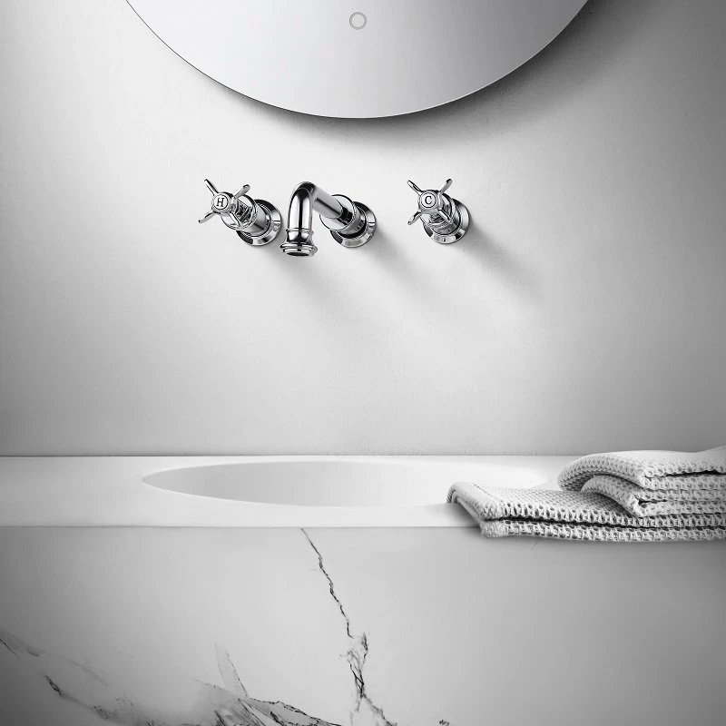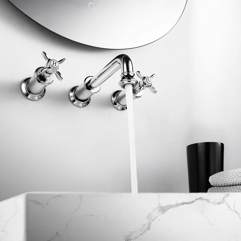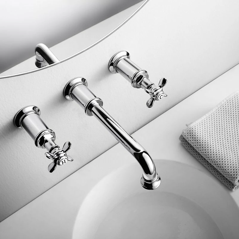 Embellissez la décoration de votre salle de bain avec ce robinet mitigeur mural Paris au style rétro pour un look vintage et élégant.