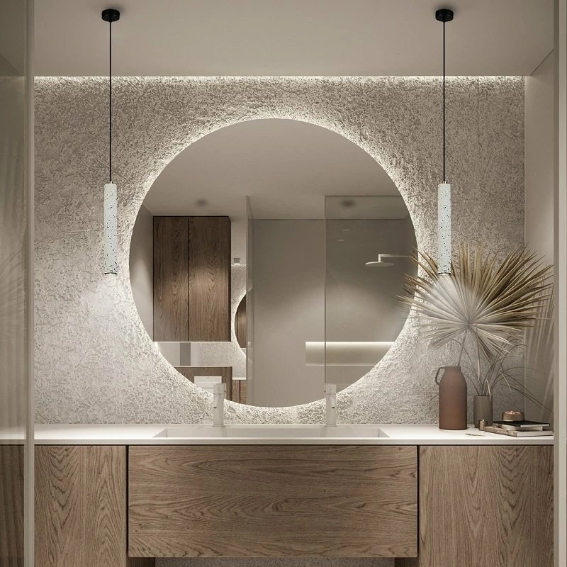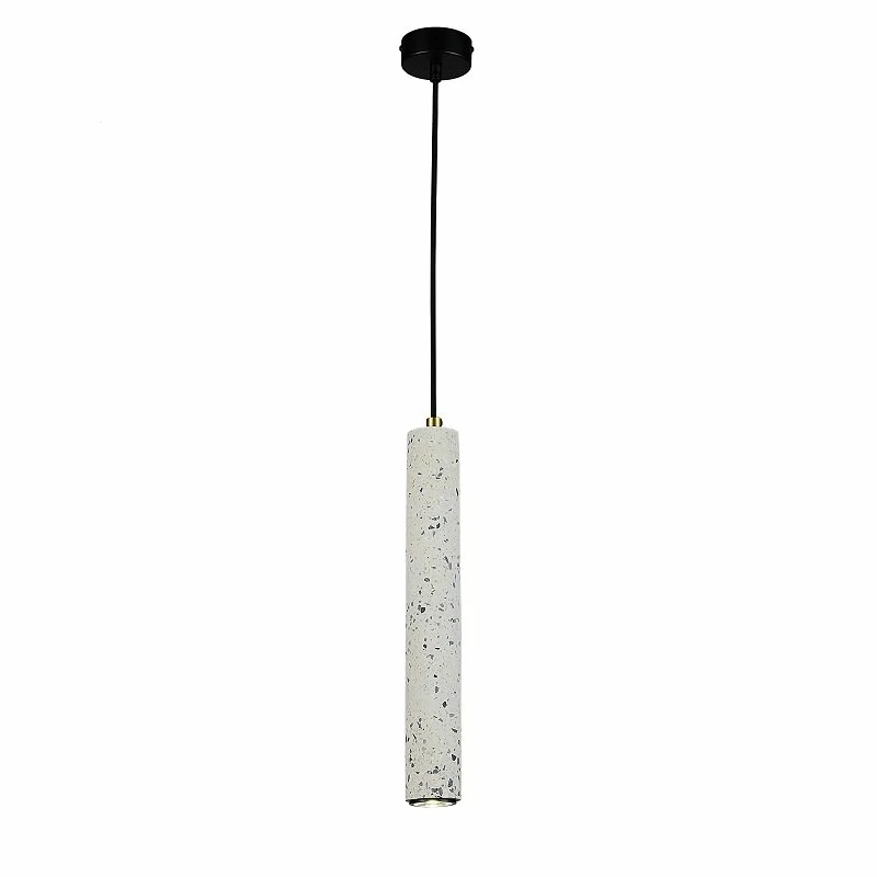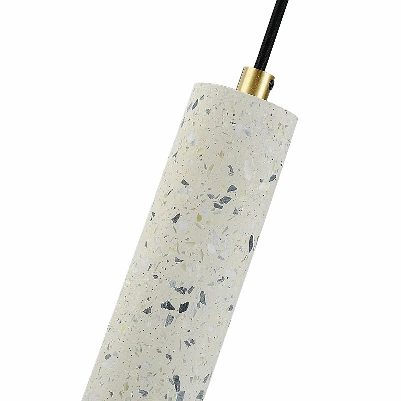 Le terrazzo s’empare de votre salle de bain grâce à la lampe suspendue pour meuble vasque Tube en Granito blanc.