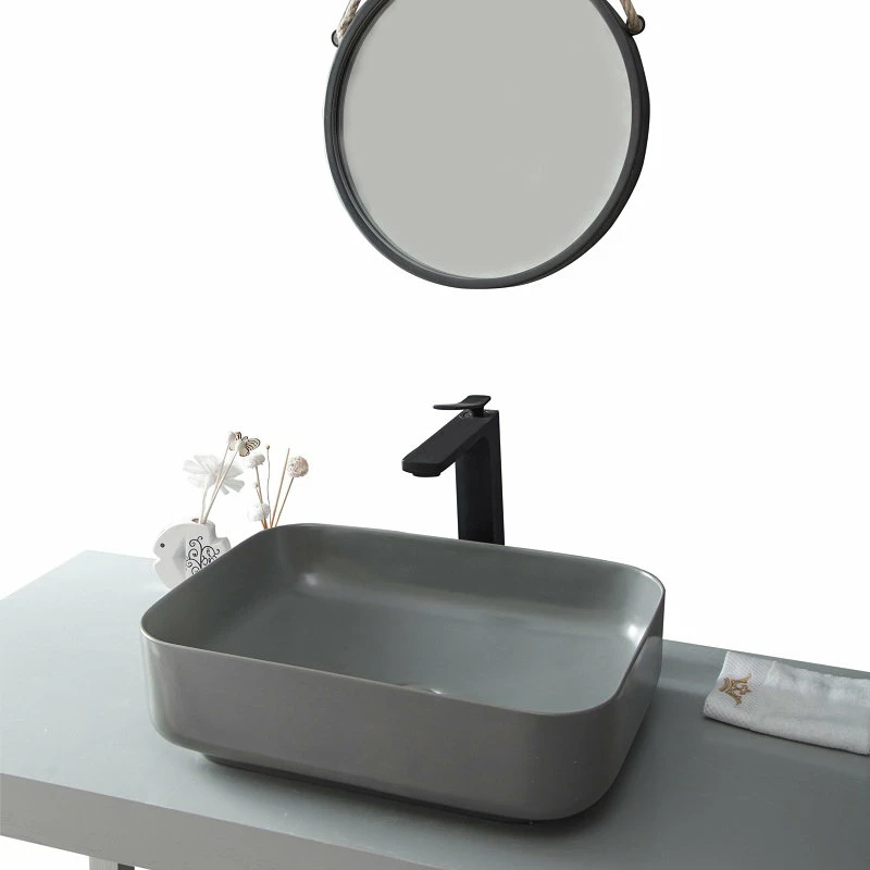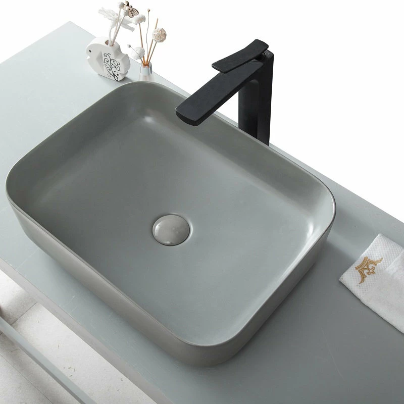 Vasque à poser rectangulaire Goa grise matte en céramique