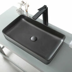 Vasque à poser rectangulaire Eve en Noir mat idéale pour utilisation familiale