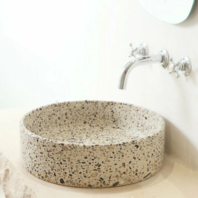 Au-delà de sa praticité, cette vasque à poser est aussi très robuste, le Terrazzo est un mélange de marbre, carrelage, fragment de pierre et ciment, il fera preuve d’une robustesse à toute épreuve!
