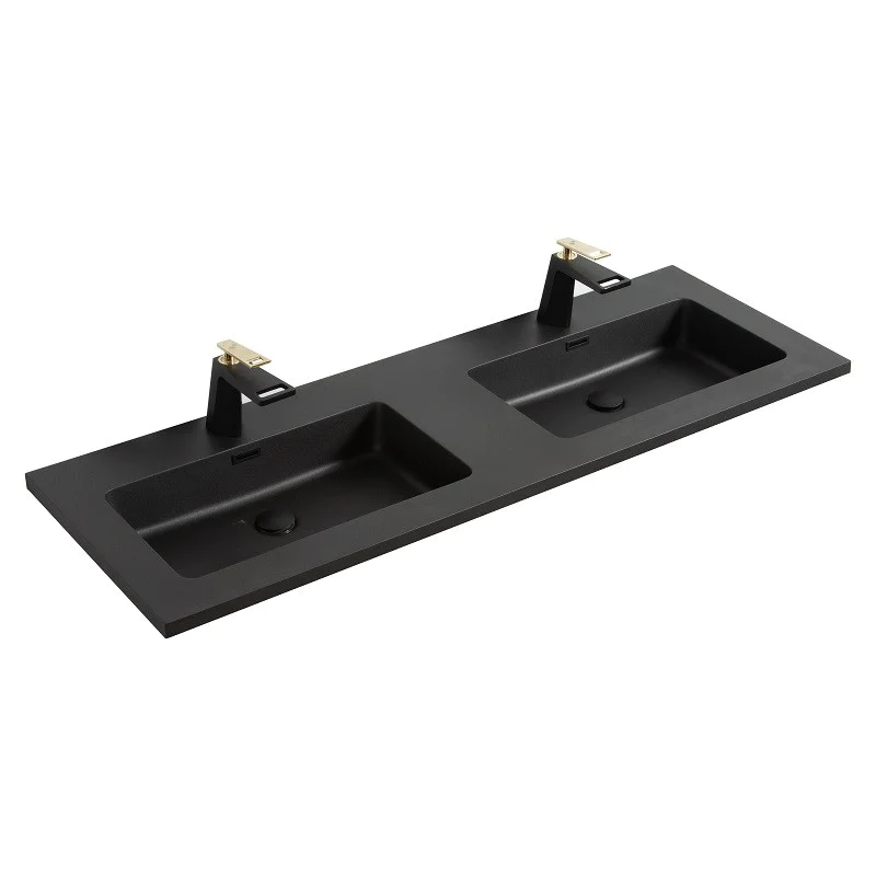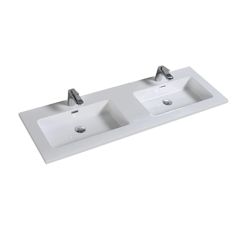 Le plan double vasque mesure 138 cm de large et 48 cm de profondeur, chose qui le rend confortable pour un usage familial, ainsi que son large rebord qui le rend facile à nettoyer. Les angles arrondis facilitent aussi le nettoyage, et accentuent le design chic et moderne de cette vasque à encastrer.