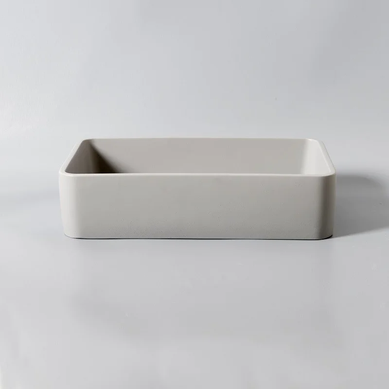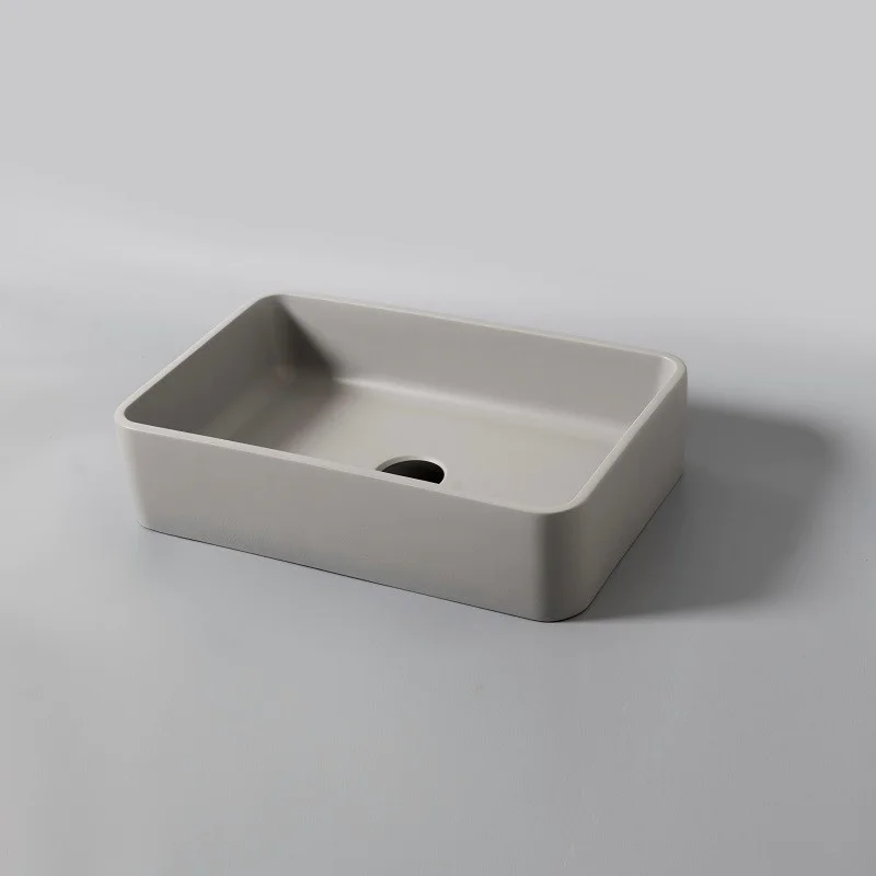 Apportez une note naturelle dans votre salle de bain avec la vasque à poser rectangulaire Raw en béton véritable 50 cm.